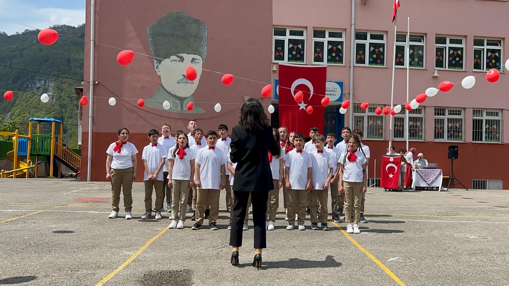 23 Nisan Ulusal Egemenlik ve Çocuk Bayramı, okulumuzda büyük bir coşku ve heyecanla kutlandı. Türkiye Büyük Millet Meclisi’nin açılışının 105. yıl dönümünde öğrencilerimiz, öğretmenlerimiz ve velilerimizin katılımıyla gerçekleşen program renkli görüntülere sahne oldu. Kutlama programı, saygı duruşu ve İstiklal Marşı’nın okunmasıyla başladı. Öğrencilerimiz hazırladıkları şiirler, dans gösterileri, koro ve ortaokul öğrencilerimizin yarışmalarıyla izleyenlere unutulmaz anlar yaşattı. Minik öğrencilerin sergilediği gösteriler büyük beğeni toplarken, veliler de çocuklarının performanslarını gururla izledi. Program sonunda velilerimiz arasında yapılan sandalye kapma yarışı eğlenceli anlar yaşattı. 23 Nisan’ın Atatürk tarafından çocuklara armağan edilmiş olması, bu özel günün ne kadar anlamlı olduğunu bir kez daha hatırlattı. Okul olarak, çocuklarımızın sevgiyle, umutla ve barış içinde büyümeleri için çalışmaya devam edeceğiz.